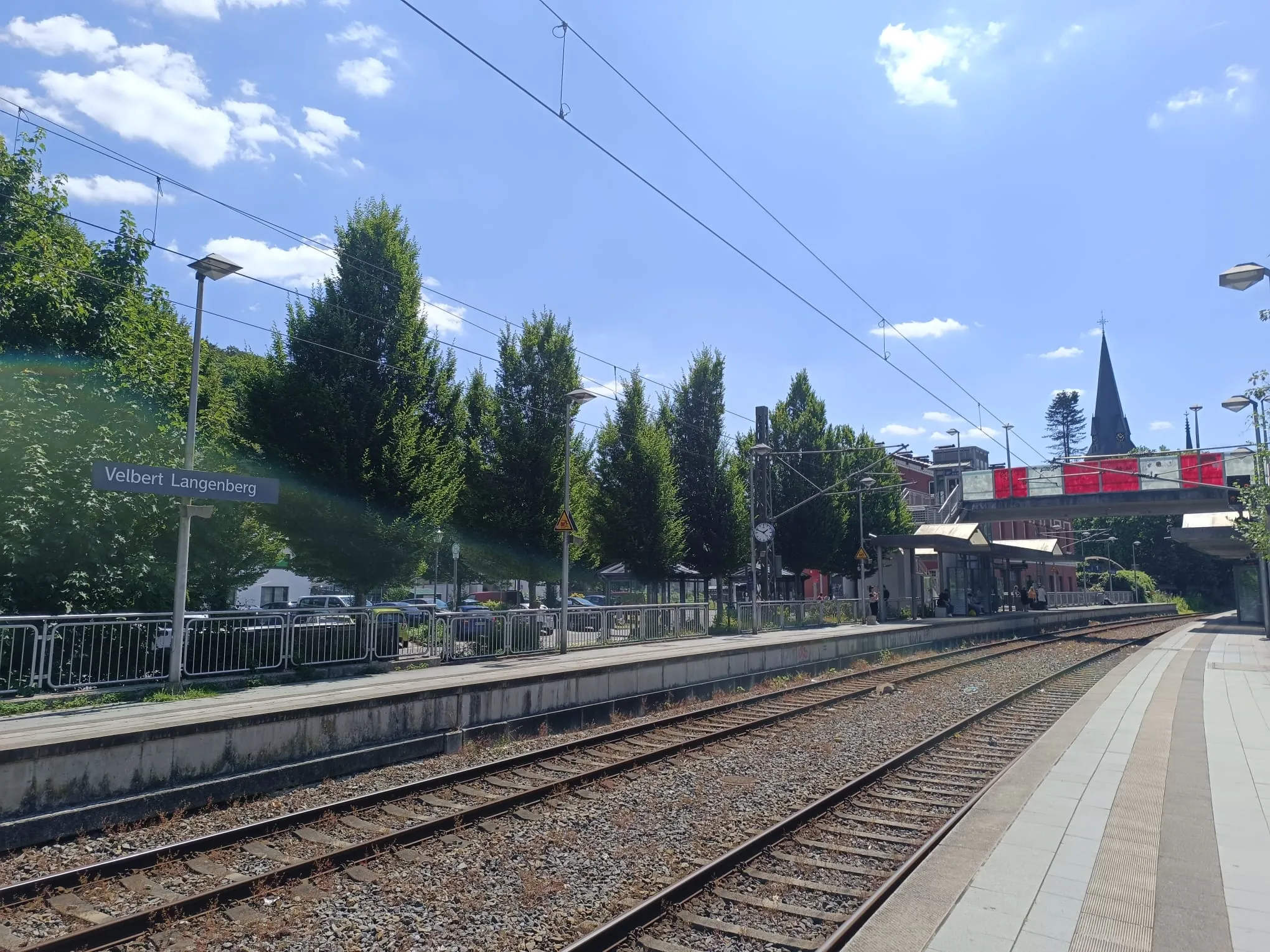 Der Langenberger Bahnhof, gilt seit 2003 als Velberts einziger aktiver Bahnhof. Er ist für die Velberter essenziell, um weite Strecken zurückzulegen. Er wurde vor über 170 Jahren am 1. Dezember 1847 erbaut und das erste Mal von der Prinz-Wilhelm-Eisenbahn-Gesellschaft in Betrieb genommen. Der Langenberger Bahnhof wurde 1888 umgebaut, wobei man ein Schienengleis von Bahnhof Aprath bis nach Langenberg verlegt hat. Von ihm aus kann man in Richtung Essen-Steele oder Wuppertal mit den Zuglinien RE 49 und der S9 fahren. Der Langenberger Bahnhof dient nicht nur dem Zugverkehr, sondern auch Bussen wie der 637, 647, welche von den Wuppertaler-Stadtwerken zur Verfügung gestellt werden. Außerdem halten die Ortsbusse Velberts 6 und 7 hier. Die Wuppertaler-Linien bringen Fährgäste aus Hattingen-Mitte bis zum wuppertaler Hauptbahnhof.